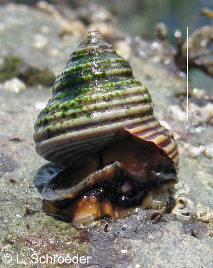 This is a rare species to find. The shell appears smooth with only faint spiral ridges.