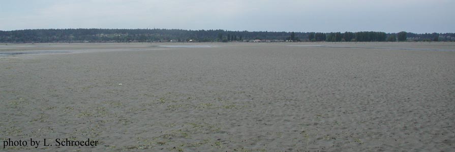 on the tide flat looking west back toward the shore